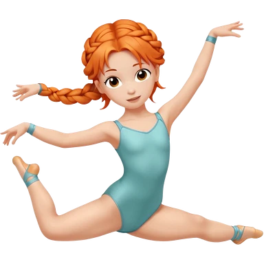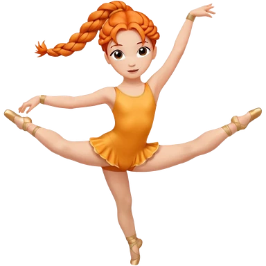 A young dancer with braided orange hair, practicing a gentle arabesque. emoji