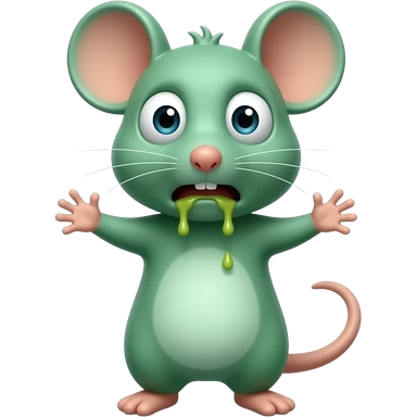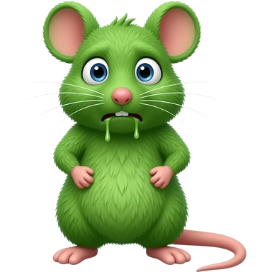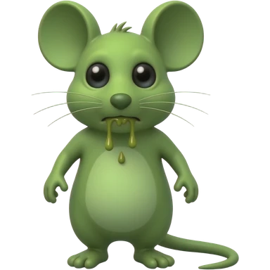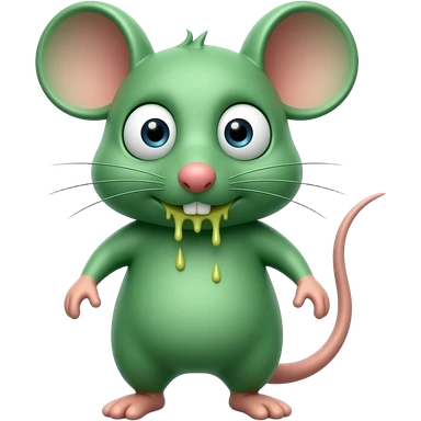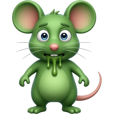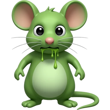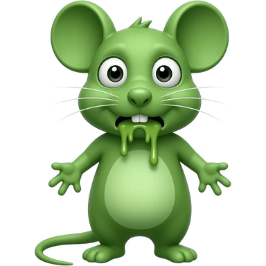 A small green mouse standing upright, with arms and legs shaped like a little person, staring at us with a disgusting and nauseating look, its mouth covered in vomit. The mouse’s body is entirely green. emoji