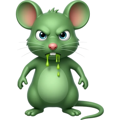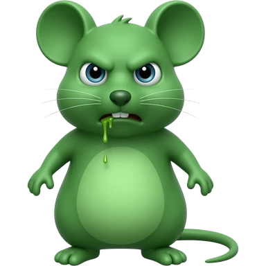 A small green mouse standing upright, with human-like arms and legs, staring at us with a look of utter disgust, with vomit on its mouth. The mouse’s body is entirely green. emoji