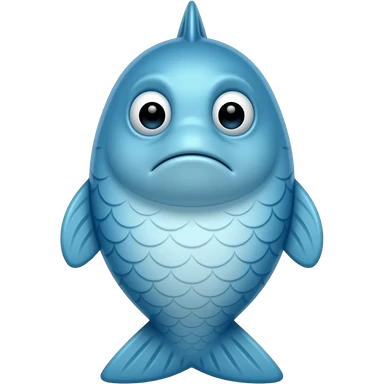 A little blue fish standing upright in the shape of a little man with a sad face emoji