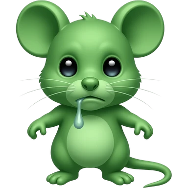 A small green mouse standing upright, with human-like arms and legs, staring at us with a look of disgust, with vomit on its mouth. The mouse’s body is entirely green. emoji