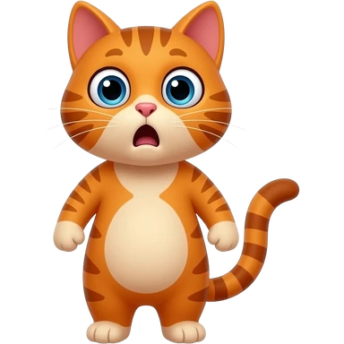 A little orange cat standing up with legs and arms like a little person, looking very surprised. All his body ia orange. emoji