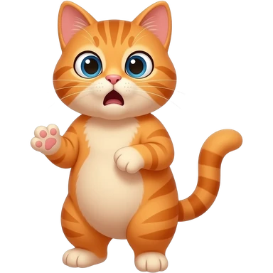 An orange cat standing upright, with hands and arms like a little person, looking very surprised. emoji