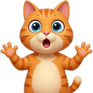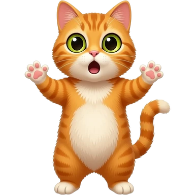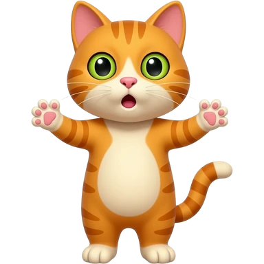 An orange cat standing upright, with hands and arms like a little person, looking very surprised. emoji