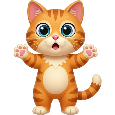 A little orange cat standing upright, with hands and arms like a little person, looking very surprised. All his body ia orange. emoji | AI Emoji Generator