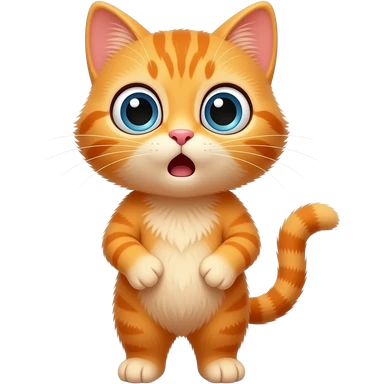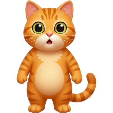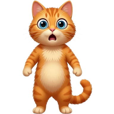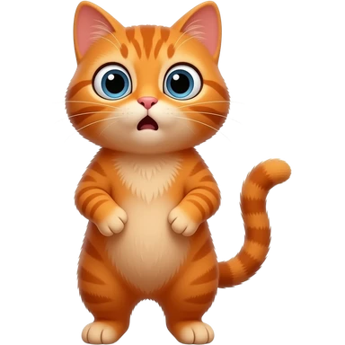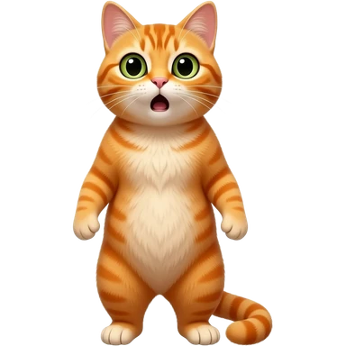A little orange cat standing up like a little person, looking very surprised. All his body ia orange. emoji