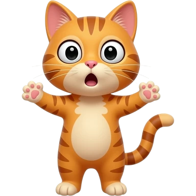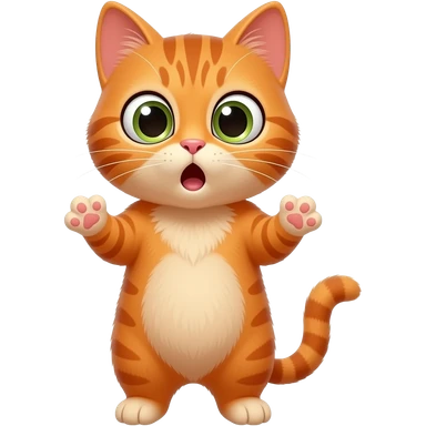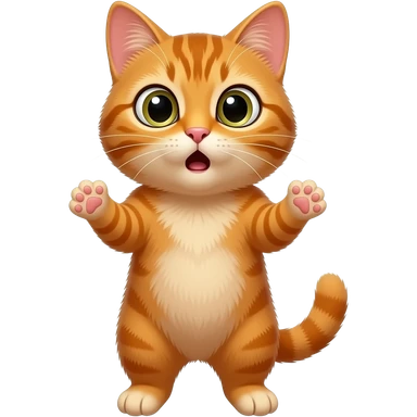 An orange cat standing upright, with hands and arms like a little person, looking very surprised. emoji