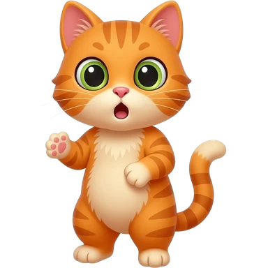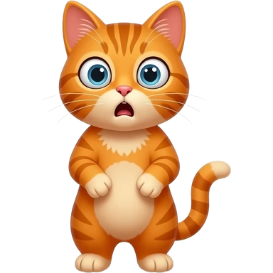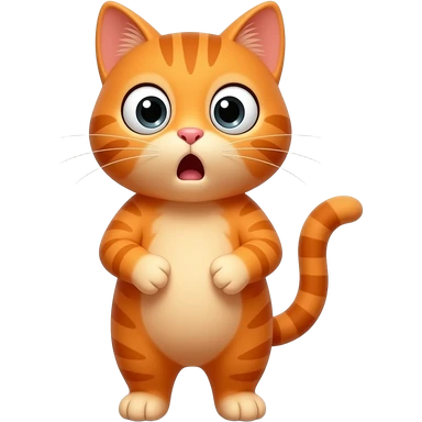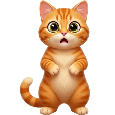 A little orange cat standing up with legs and arms like a little person, looking very surprised. All his body ia orange. emoji