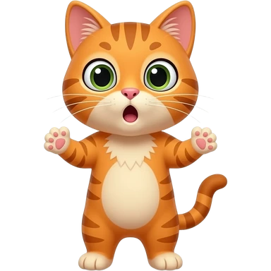 A little orange cat standing upright, with hands and arms like a little person, looking very surprised. All his body ia orange. emoji