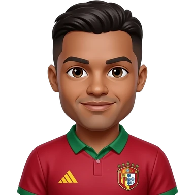 A black man with Messi hair and a Ronaldo top what is red and green the cheeks a little chubby emoji