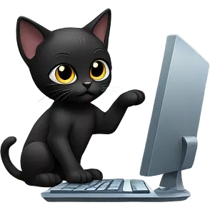 create an anonymous hacker emoji, having a laptop, and in that laptop display a set of hacking programming is running in the laptop display. make that emoji background is black. And also the face of the emoji looks like cute technical creative cat emoji