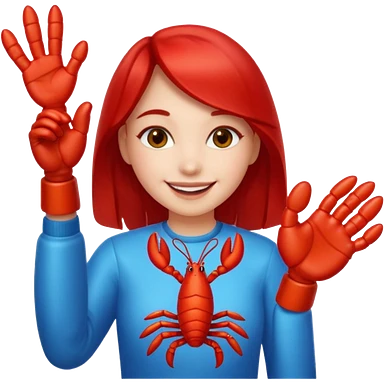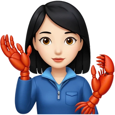 a lobster claw high five a girl with black hair emoji emoji | AI Emoji Generator