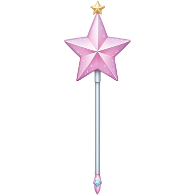 a long, slender stick, often depicted in a shimmering silver , At the top, it features a large, star-shaped tip that sparkles with pastel colors like pink, The wand has whimsical designs with glittering accents emoji
