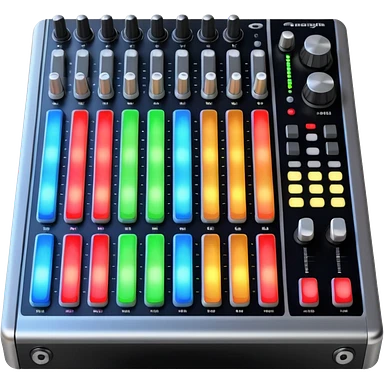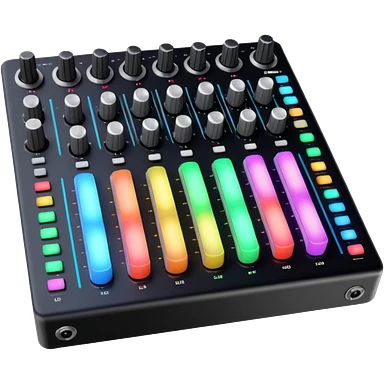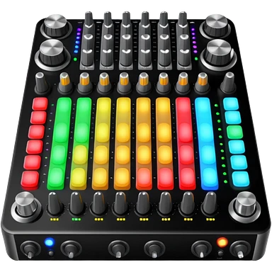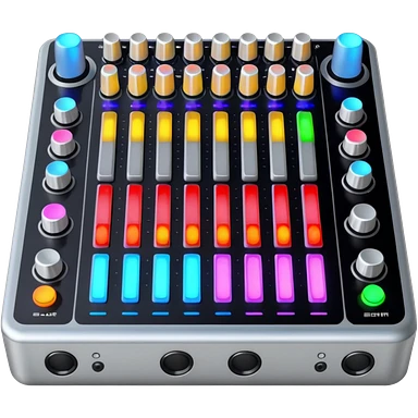 A longboard DJ mixer with faders, EQ knobs, and colorful LEDs. emoji | AI Emoji Generator