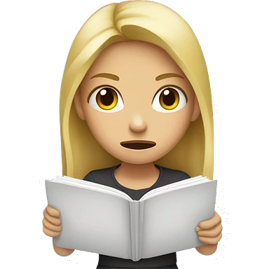 a blonde girl who tears up a notebook with her hands with an angry look emoji
