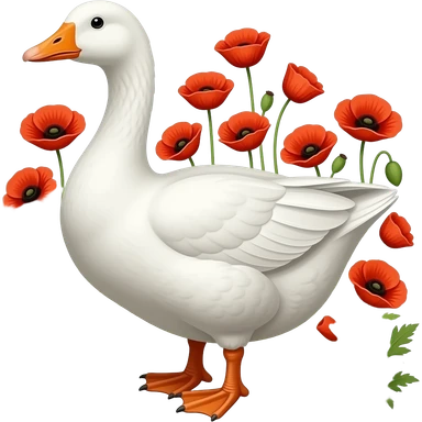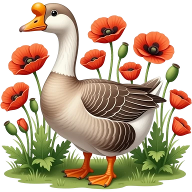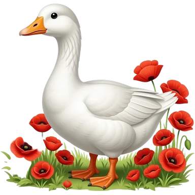 a goose on a farm with poppies emoji