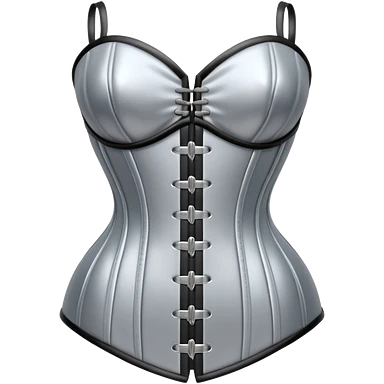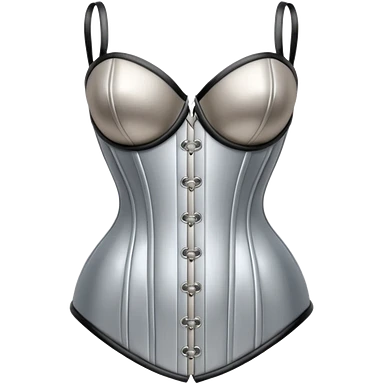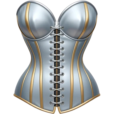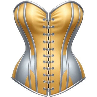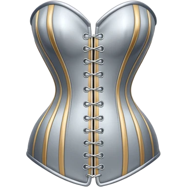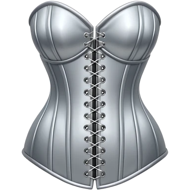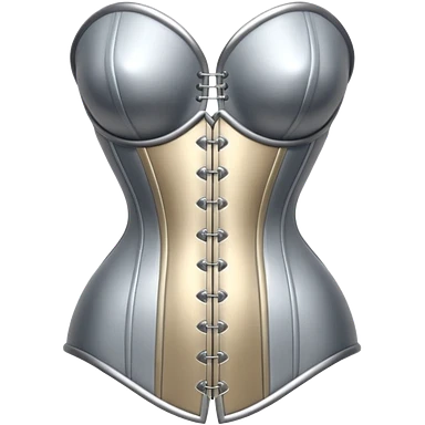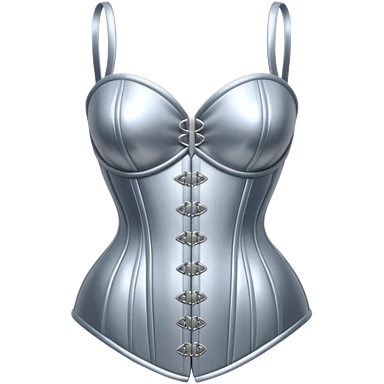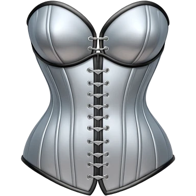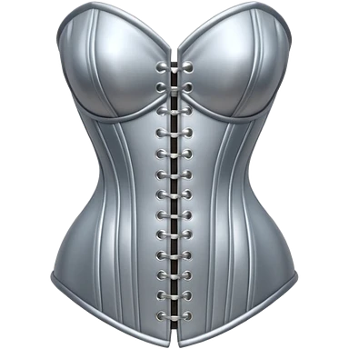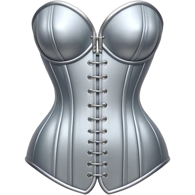 A luxury corset emoji made of silver chrome, smooth metallic curves, minimal fashion silhouette, glossy reflections, sensual high-end aesthetic, iOS emoji style, centered, clean white background emoji | AI Emoji Generator
