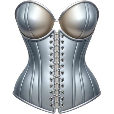 A luxury corset emoji made of silver chrome, smooth metallic curves, minimal fashion silhouette, glossy reflections, sensual high-end aesthetic, iOS emoji style, centered, clean white background emoji