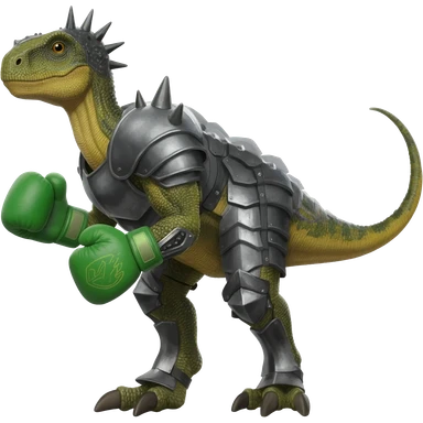 a dinosaur with green armored hands like boxing gloves and a spike on its and head and has armored body a tail and legs emoji