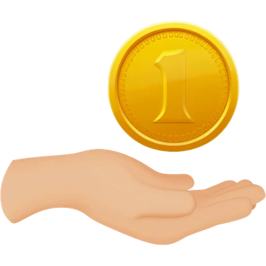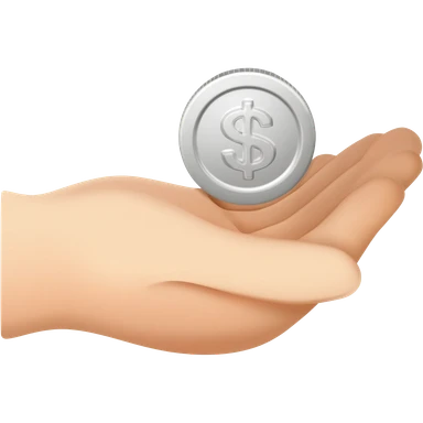 A friendly open hand gently holding or offering a coin, symbol of donation emoji