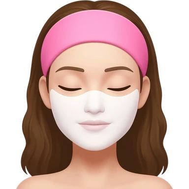 A woman with brown hair, eyes closed, calm and neutral expression, not smiling, wearing a pink headband, wearing a white sheet mask, simple emoji style, flat 2D render, pastel colors, white background emoji