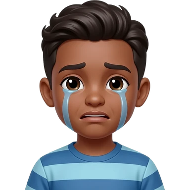 A red head kid holding a fishing rod crying wearing a black shirt andf shorts emoji