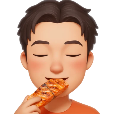 Asian with closed eyes eating fish emoji