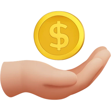 A friendly open hand gently holding or offering a golden coin, symbol of donation emoji