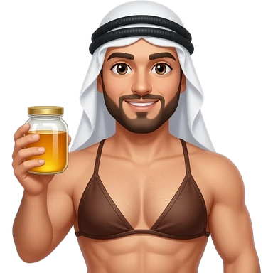 Arab muscle man in brown bikini holding a jar of honey emoji