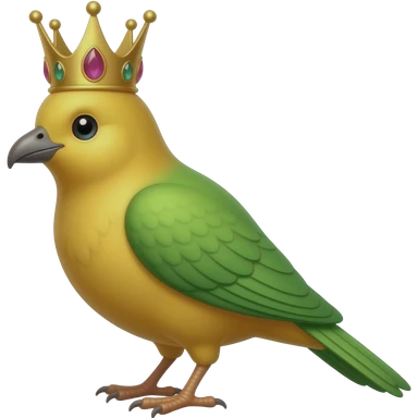 A golden bird with green wings and a ruby-embedded queen's crown on top emoji