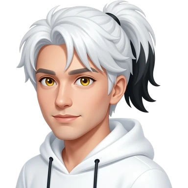 A male Snow Angel with white hair tied in a ponytail with black on the end, and golden eyes. emoji