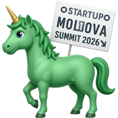 A green unicorn holding a sign that says "Startup Moldova Summit 2026" emoji