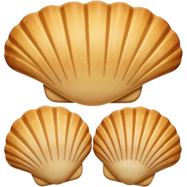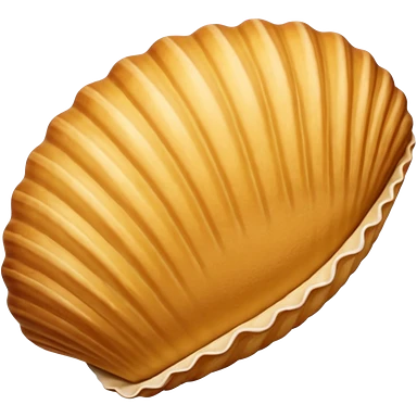 A madeleine pastry. Scalloped oval seashell shape with ONLY four to five vertical lines going in the same direction. Light golden brown. Scalloped edge. Cookie. Flat. Long. Oval shape. Lets scallops. emoji | AI Emoji Generator