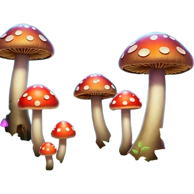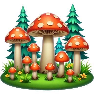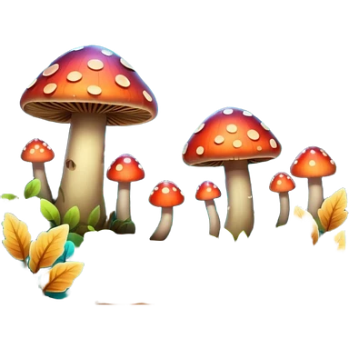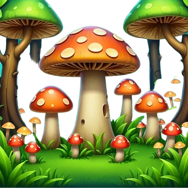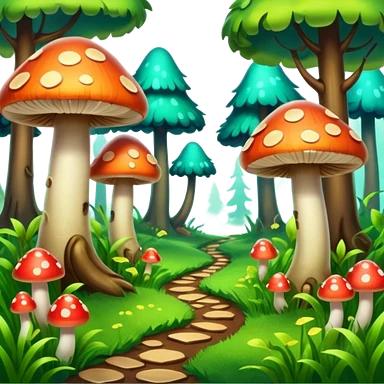 A stylized fantasy forest with glowing mushrooms and colorful leaves. emoji