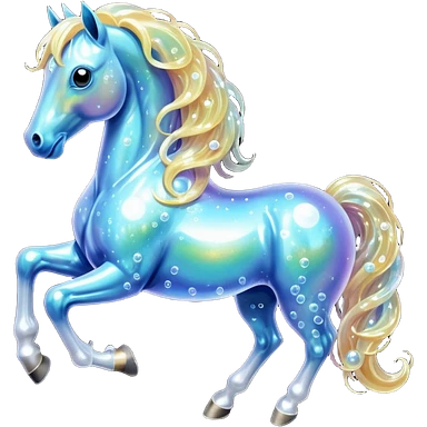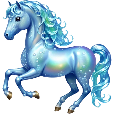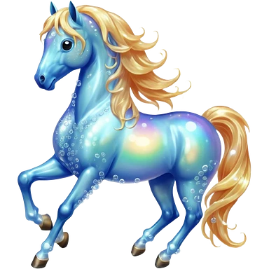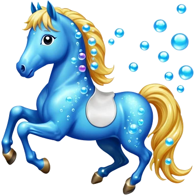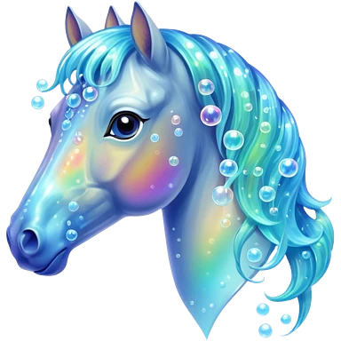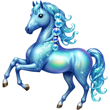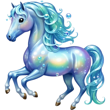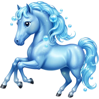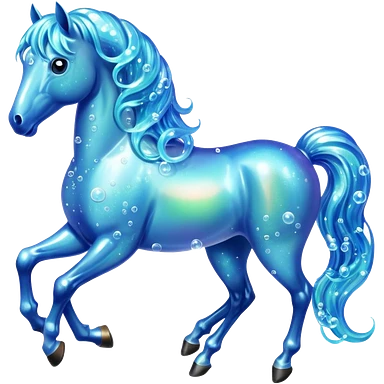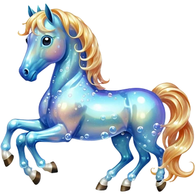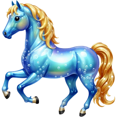 A magical horse made entirely of transparent bubbles and water, with a flowing mane of small bubbles emoji | AI Emoji Generator