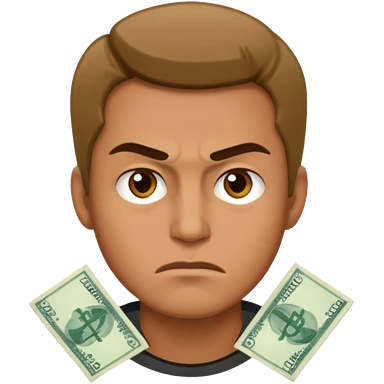 a man with money and angry face emoji