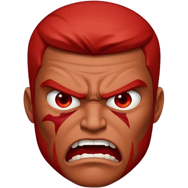 a very angry man with red skin and gray hair, expressive face, intense emotion emoji