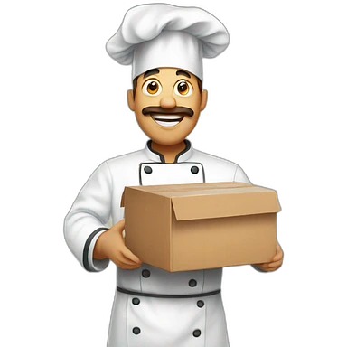 A CHEF WITH A SURPRISE BOX full of vegetables with no hat chef and a beard white skin emoji