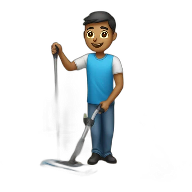 ligth man in cleaning clothes, holding a broom and a bucket emoji