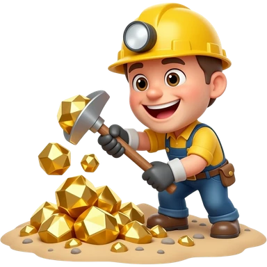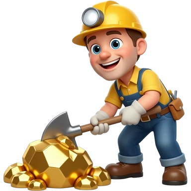 A funny 3D cartoon miner happily digging huge shiny gold nuggets from the ground, exaggerated “Gold Digger” concept. Bright colors, soft cinematic lighting, clean background, high detail, ultra realistic render. emoji