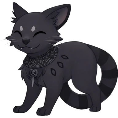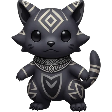 Rare dark dusky dull-colored exotic edgy cool epic aesthetic gothic emo Salandit-Litten-Houndoom-Civet-species-Fakemon-hybrid-creature, with a collar, and with intricate tribal markings, full body emoji