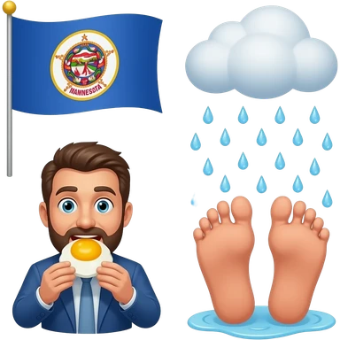 the flag of the state of Minnesota watching as a man eats raw egg yolks and feet rains down from the sky emoji