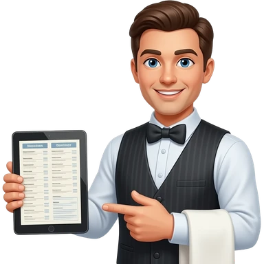 creaet a waiter for a restorent food ordering app men can make i need a moving one it like moving like a emoji emoji