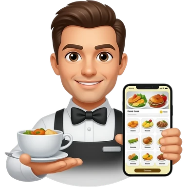 creaet a waiter for a restorent food ordering app men can make it like moving like a emoji emoji