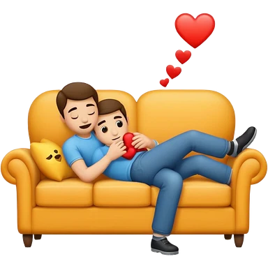 A man and a women photographed from behind, sitting on a sofa and watching the news on TV on a modern flat screen. The setting is a living room. emoji
