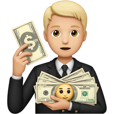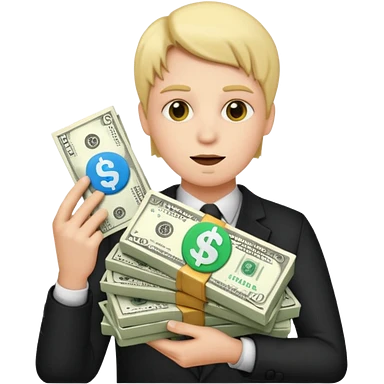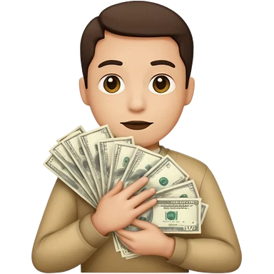 a man holding a stack of money emoji