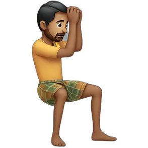 A man in a dark blue hoodie with a capelet on his head, his face not visible in the shadows, is sitting at a computer. emoji | AI Emoji Generator