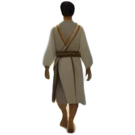 a 32-year-old man with pale skin and black hair, wearing flip-flops, pink shorts and a blue over-sidez t-shirt, going for a walk with a female 9-year-old Bichón Frisé dog. emoji