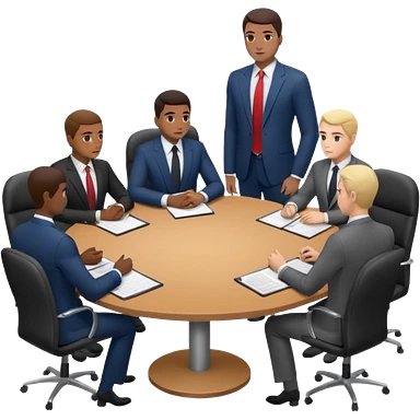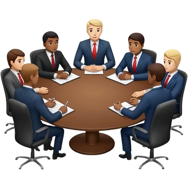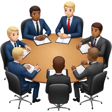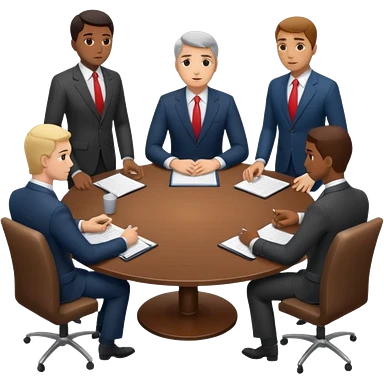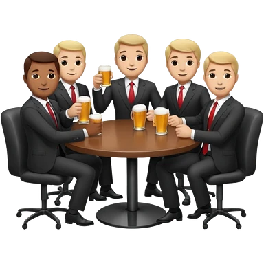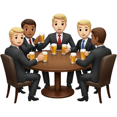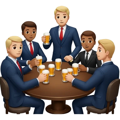 a business meeting of serious businessmen in suits at a round table, drinking beer. emoji