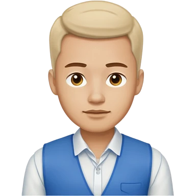 young blond man with gray-blue eyes dressed in a gray hoodie and black vest emoji